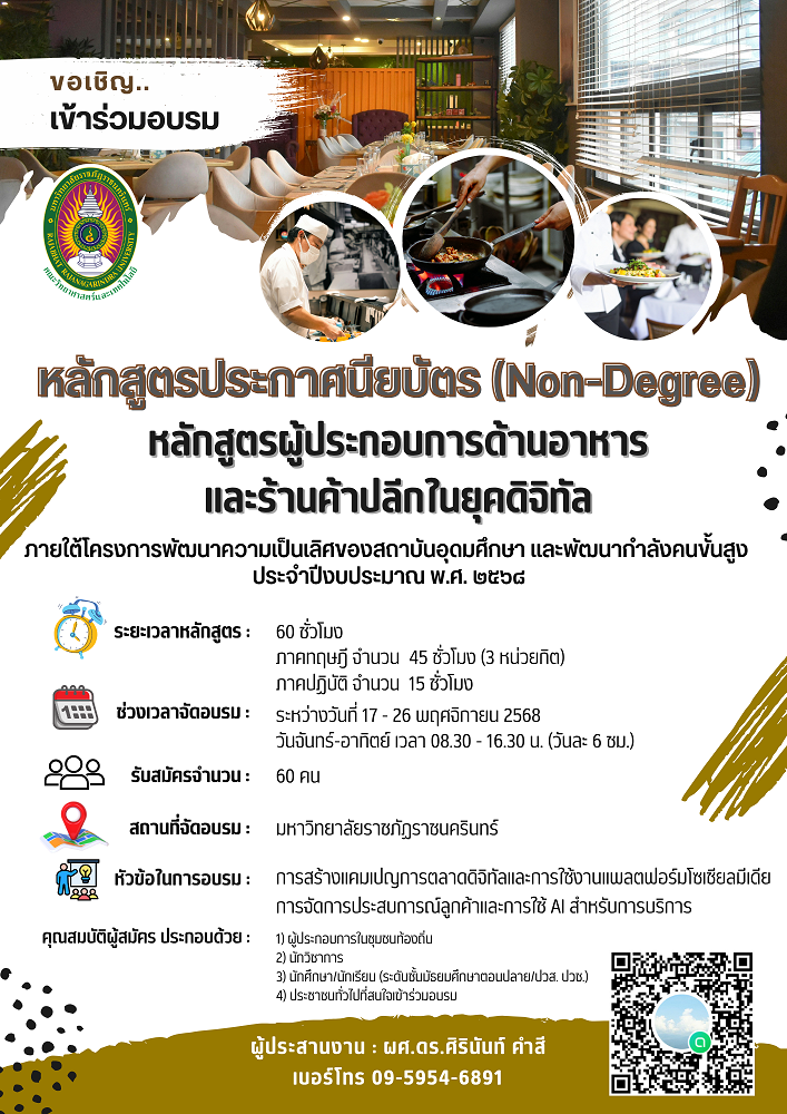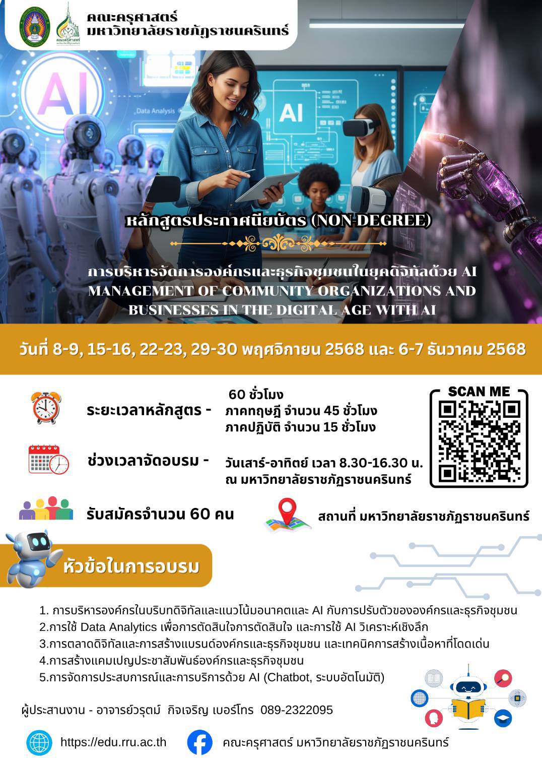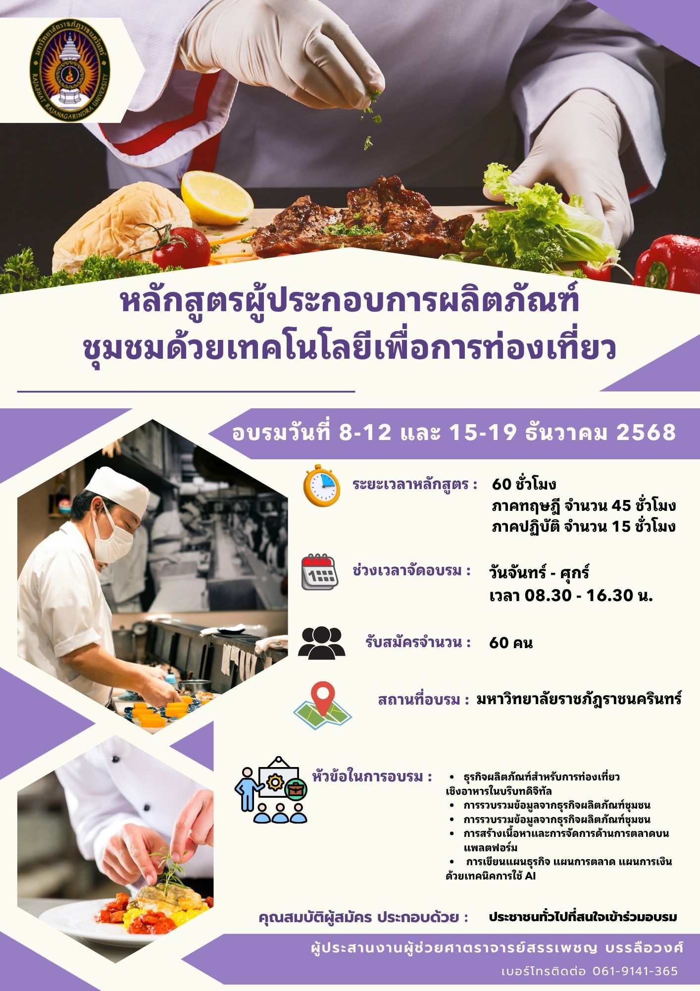 วันที่ 20 ต.ค. 68 เวลา 09.00 น. สถาบันพัฒนาศักยภาพกำลังคนแห่งอนาคตจัดโครงการพัฒนานวัตกรรมชุมชนบนฐานทุนชุมชนตามแนวคิด STEM For BCG Model and Soft Power โดยโครงการดังกล่าวจัดขึ้นระหว่างวันที่ 20 และ 22 ตุลาคม 2568 ณ ห้องศรีสยาม ชั้น 4 อาคารราชนครินทร์ มหาวิทยาลัยราชภัฏราชนครินทร์ วัตถุประสงค์เพื่อพัฒนาศักยภาพวิทยากรและครูผู้สอนสังกัดสำนักงานส่งเสริมการเรียนรู้ให้มีความสามารถพัฒนาผู้เรียน ในการพัฒนาผลิตภัณฑ์ชุมชนบนฐานทุนชุมชนตามแนวคิด STEM For BCG Model and Soft Power และเพื่อพัฒนาผลิตภัณฑ์ชุมชนตามแนวคิด STEM For BCG Model and Soft Power โดยมี ผู้ช่วยศาสตราจารย์ ดร.พิภัทรา สิมาโรจนา รองอธิการบดี เป็นประธานในพิธีเปิดโครงการ